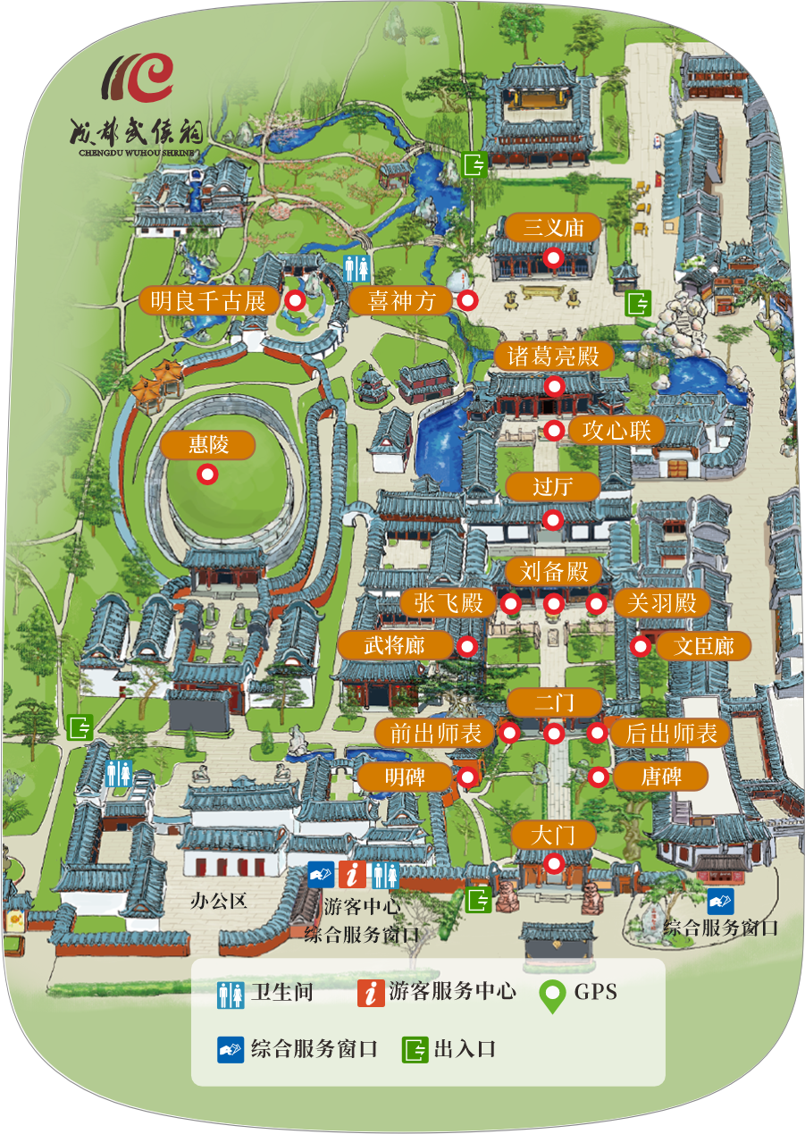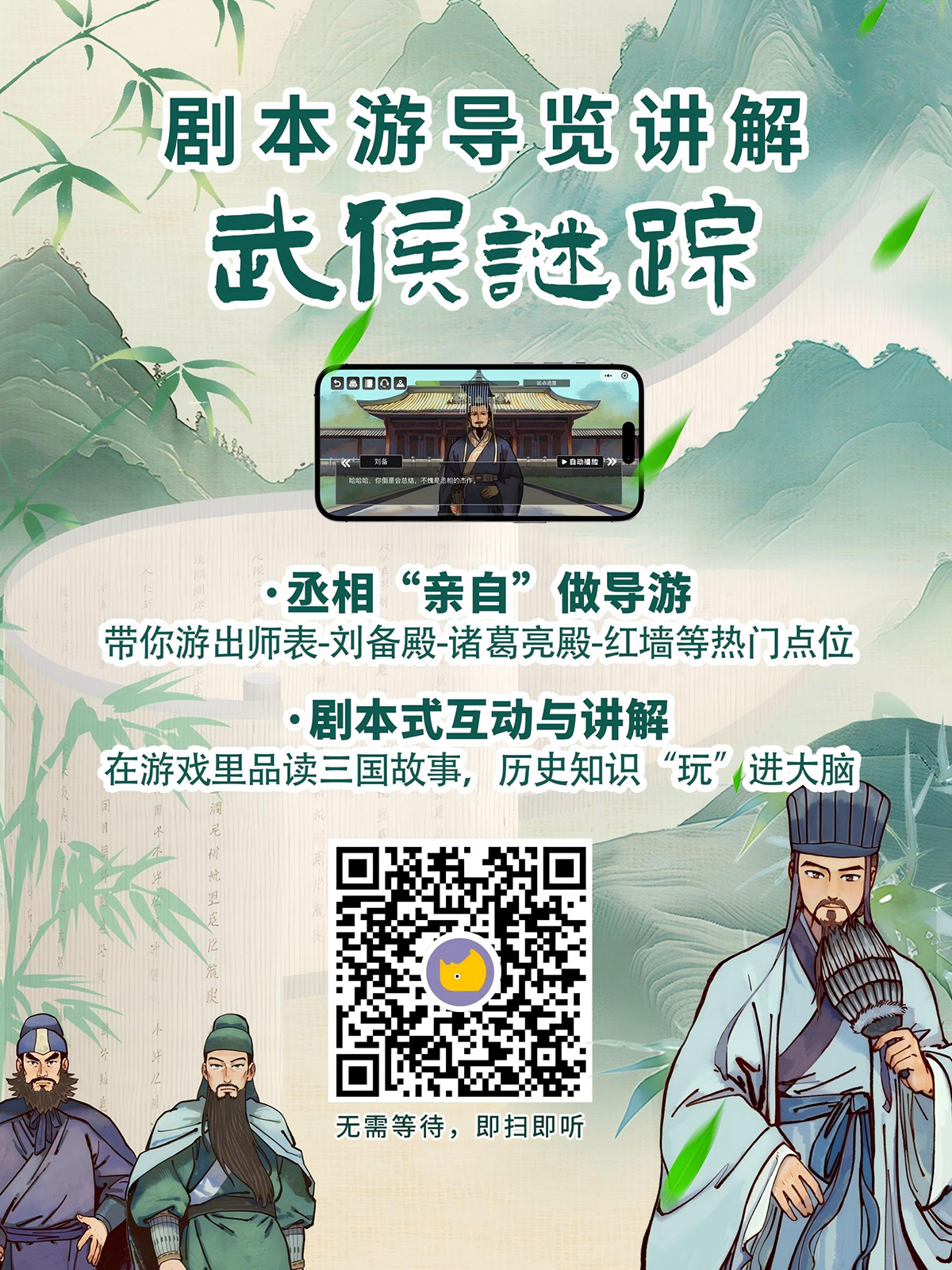 关注“成都武侯祠”微信公众号(扫描下方二维码或在微信中搜索“成都武侯祠”),选择讲解导览,即可使用。