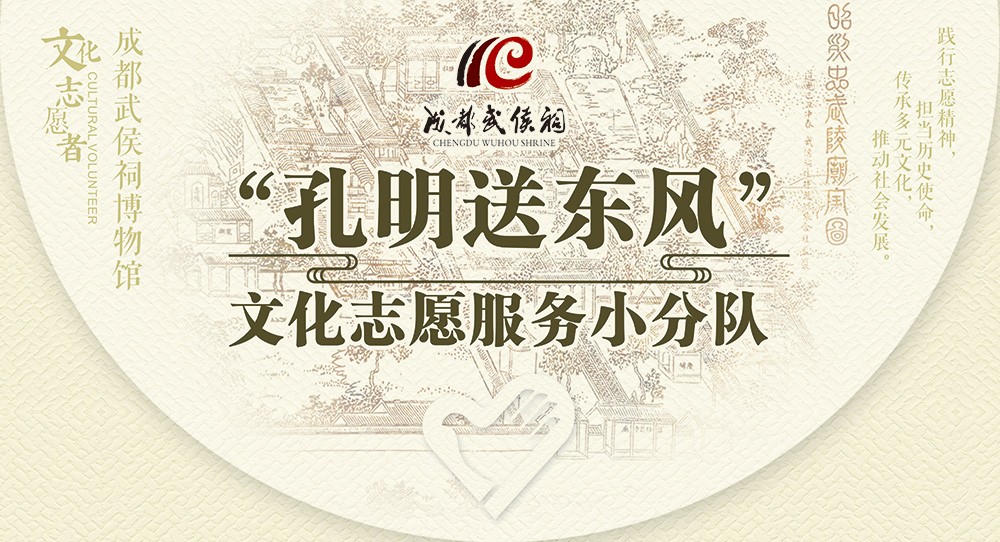成都武侯祠博物馆“孔明送东风”文化志愿服务项目于2018年正式启动,涵盖馆内日常志愿服务与馆外系列主题志愿活动。截至目前,成都武侯祠博物馆“孔明送东风”文化志愿小分队已先后走进成都众多中小学校以及凉水井社区、玉北社区等众多社区,传授“三国书院”系列原创社教课程,进行文化宣讲与趣味知识问答互动,增进学生对三国历史文化的了解,以及公众对志愿服务的认同。此外,小分队还远赴青川县、凉山州、阿坝州等偏远山区,与学校签署帮扶协议,捐赠图书及生活用品,并开展博物馆特色课程,普及中国历史文化。